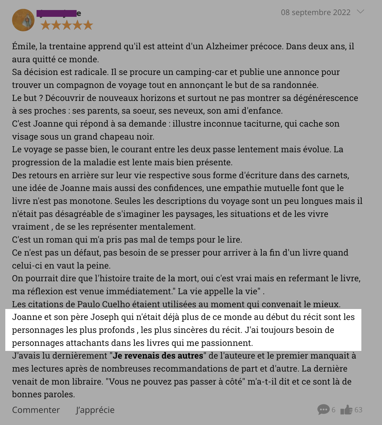 Regardez par exemple cette critique d’un roman best-seller :